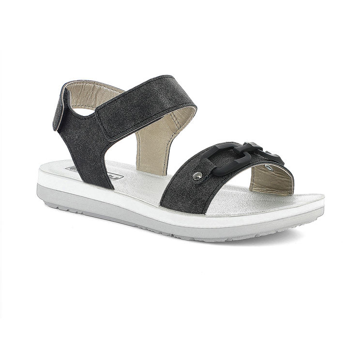 Sandali con doppia chiusura a strappo, impreziositi da fibbia ton sur ton. Il plantare imbottito li rende comodissimi.