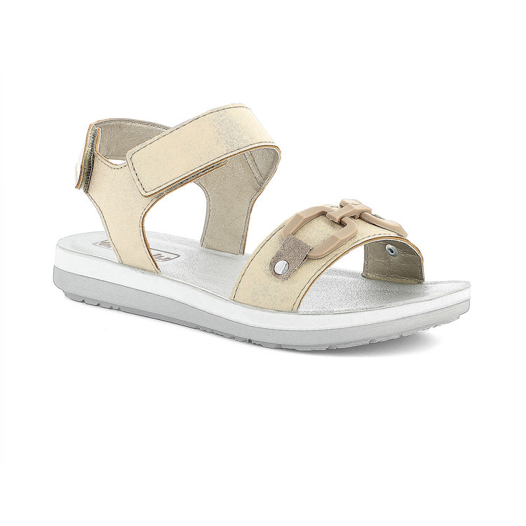Sandali con doppia chiusura a strappo, impreziositi da fibbia ton sur ton. Il plantare imbottito li rende comodissimi.
