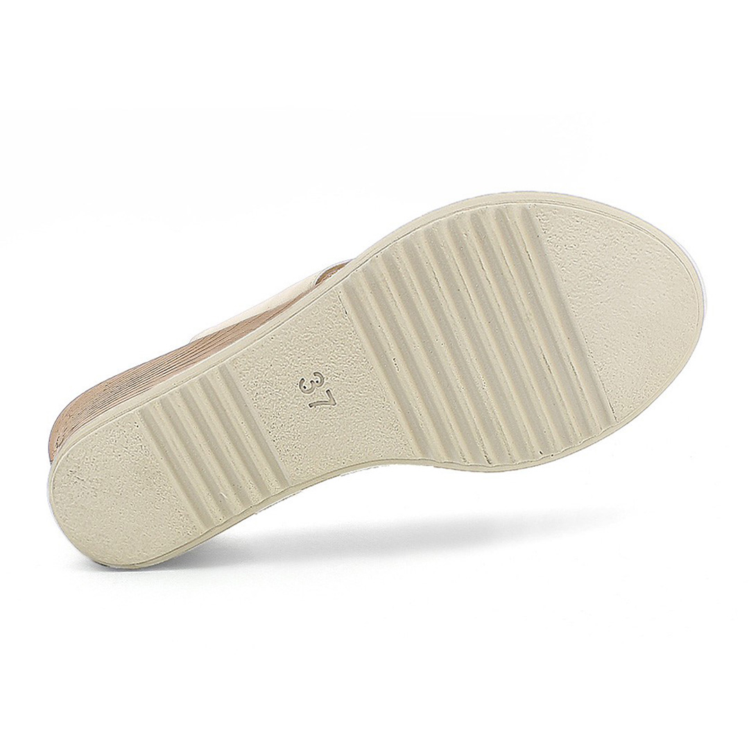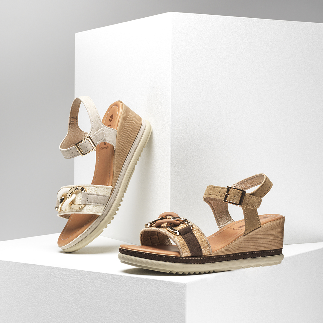 Il cinturino mantiene il piede saldamente ancorato, mentre la zeppa leggerissima di oltre sei centimetri è ingentilita dal plateau: i tuoi piedi ringraziano. Per una coccola extra il plantare è in morbida ecopelle imbottita.