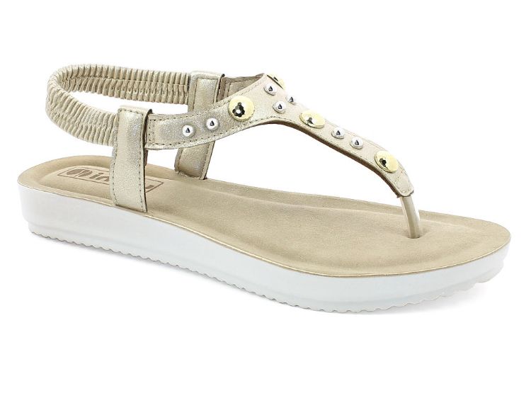 Sandalo infradito con morbido plantare imbottito. Borchie tonde metalliche impreziosiscono questo sandalo che mette in risalto il piede.
