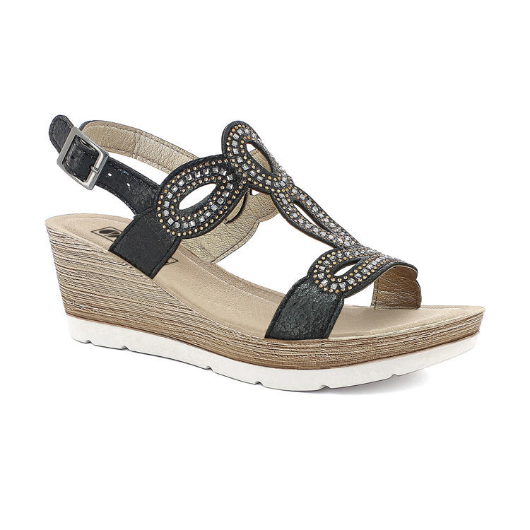 Sandali a zeppa con cinturino regolabili e decori con brillantini.
