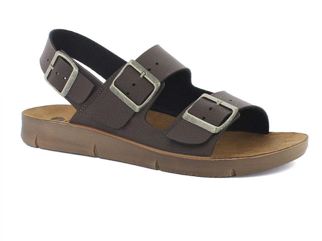 Sandalo doppia fascia in ecopelle con tre fibbie regolabili. Un modello perfetto per chi ama lo stile con la comodità del sandalo! La fodera di questo sandalo è in materiale sostenibile, proveniente dal riciclo di bottigliette di plastica.