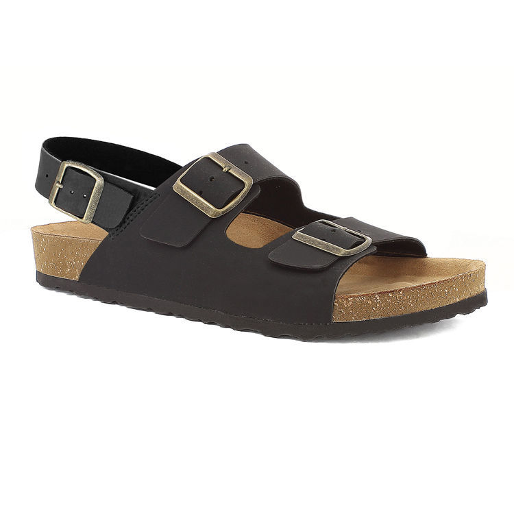 Sandali da uomo con tripla possiblilità di regolazione tramite fibbia. Plantare in vera pelle imbottito.
