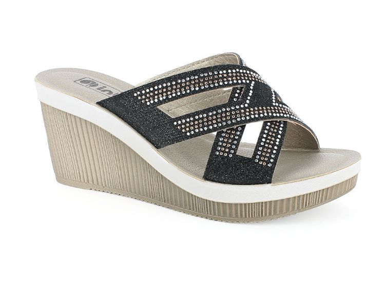 La zeppa è leggera grazie al materiale poliuretanico che rende ogni tuo passo confortevole.Le fasce incrociate sono abbellite da brillanti strass.