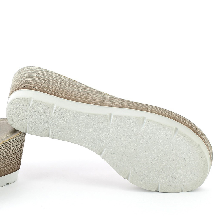 Infradito con zeppa e fibbia. Plantare morbido imbottito.