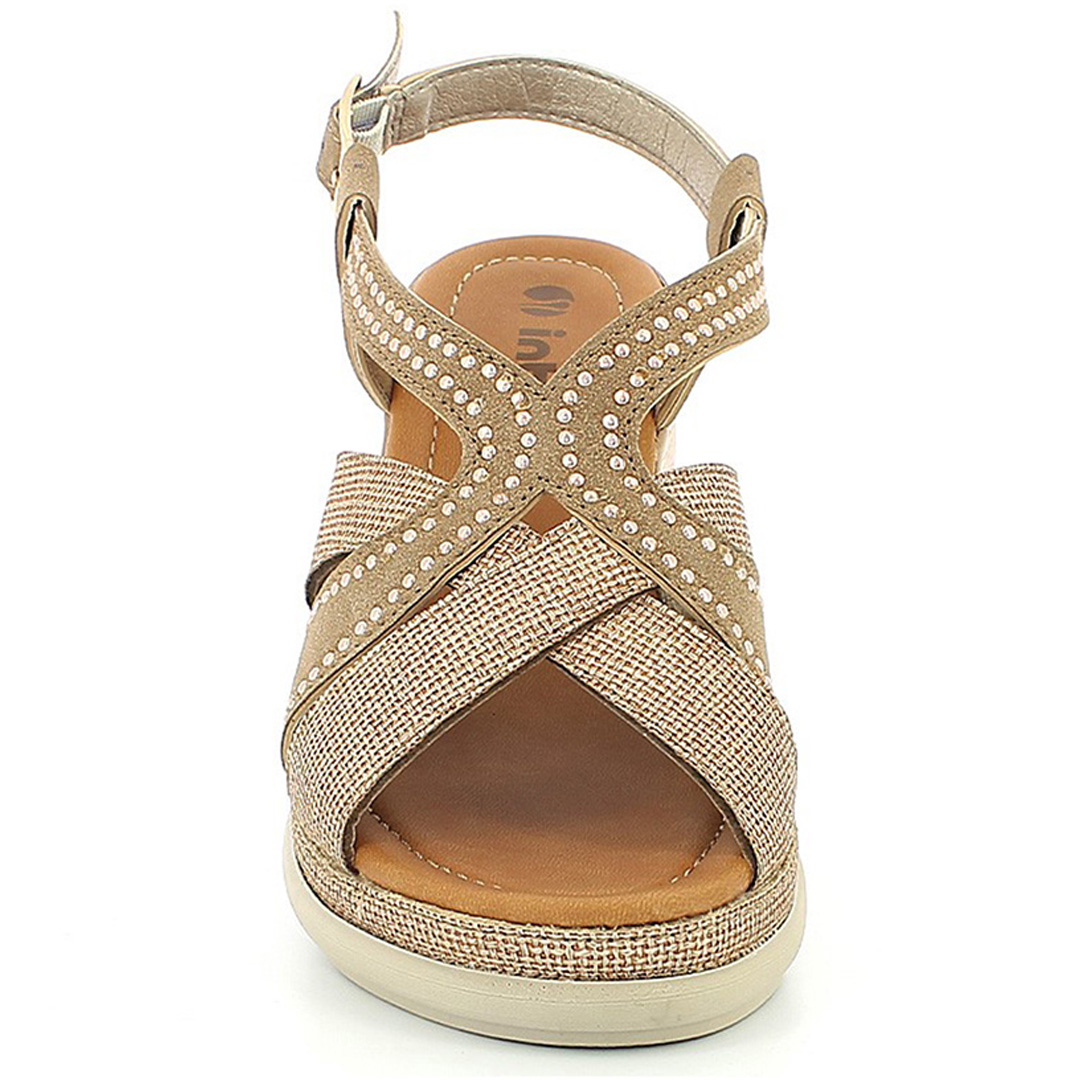 Comodi sandali a zeppa con cinturino regolabile e brillantini.