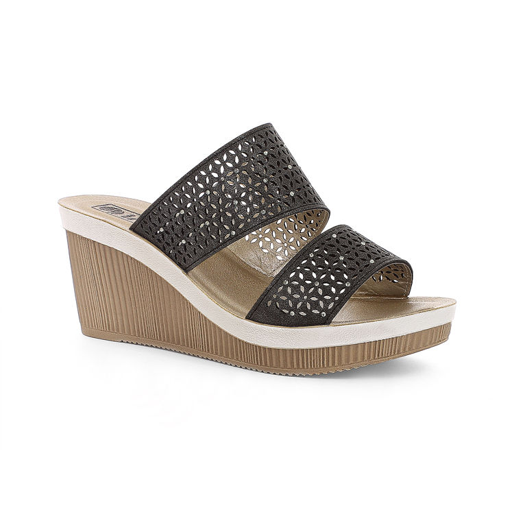 Zeppe con decoro traforato a motivo floreale. Plantare imbottito.