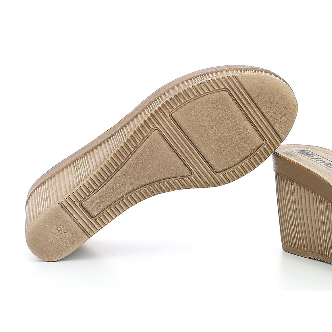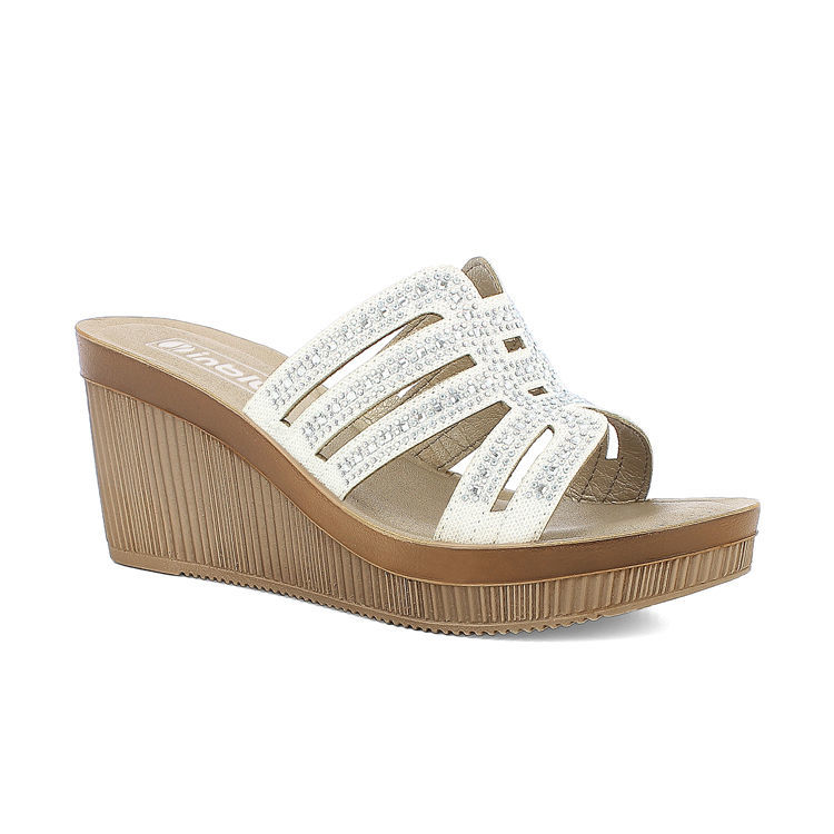 Zeppa con piccole fasce ricoperte di strass. Hanno un morbido plantare imbottito.