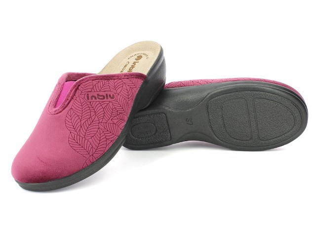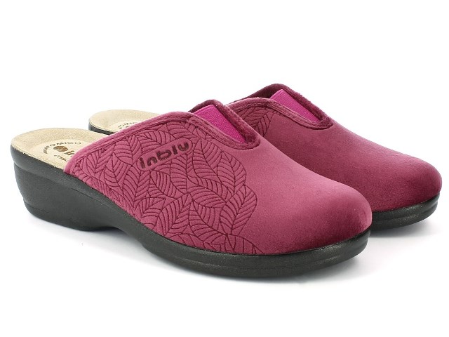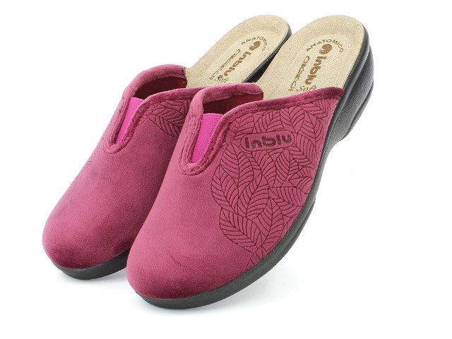 Comode pantofole con zeppa. Sottopiede in vera pelle, imbottito e automodellante che dona morbidezza e comfort al piede.