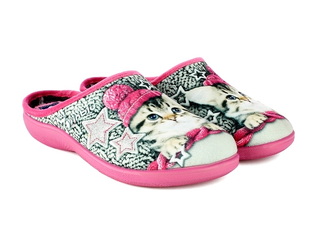 Calde pantofole invernali da donna con tomaia realizzata in morbido tessuto, arricchita da una stampa colorata, simpatica e vivace e stelline glitterate. Sottopiede super imbottito, morbido e automodellante che dona morbidezza alla pantofola e comfort al piede. Suola in poliuretano per una perfetta aderenza al terreno ad effetto antiscivolo. Elevata flessibilità e leggerezza.