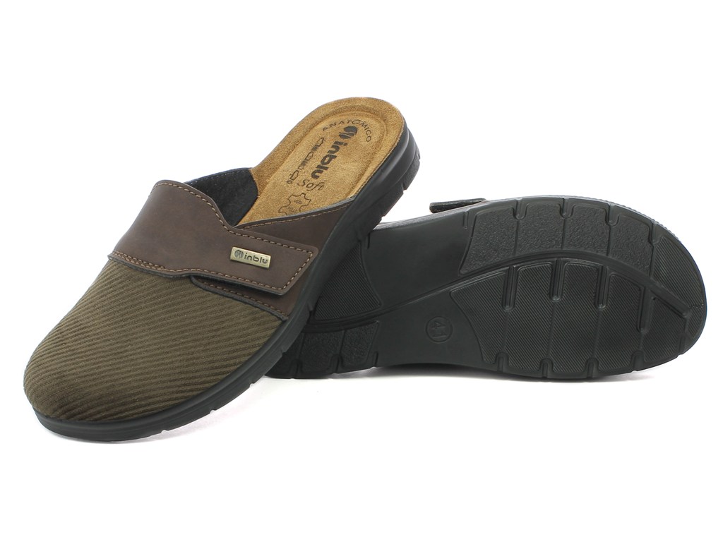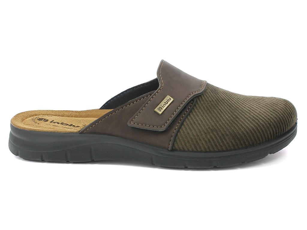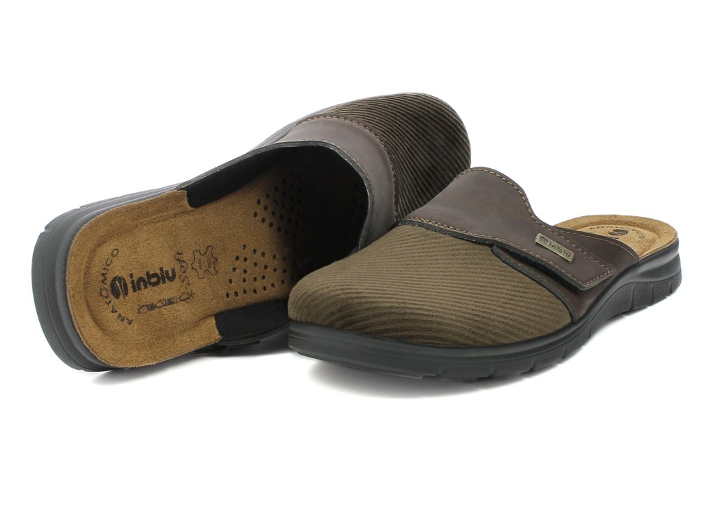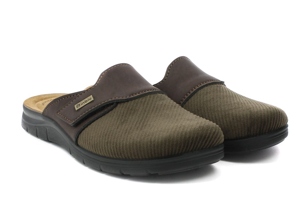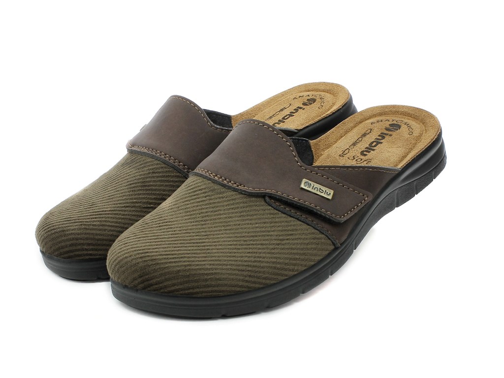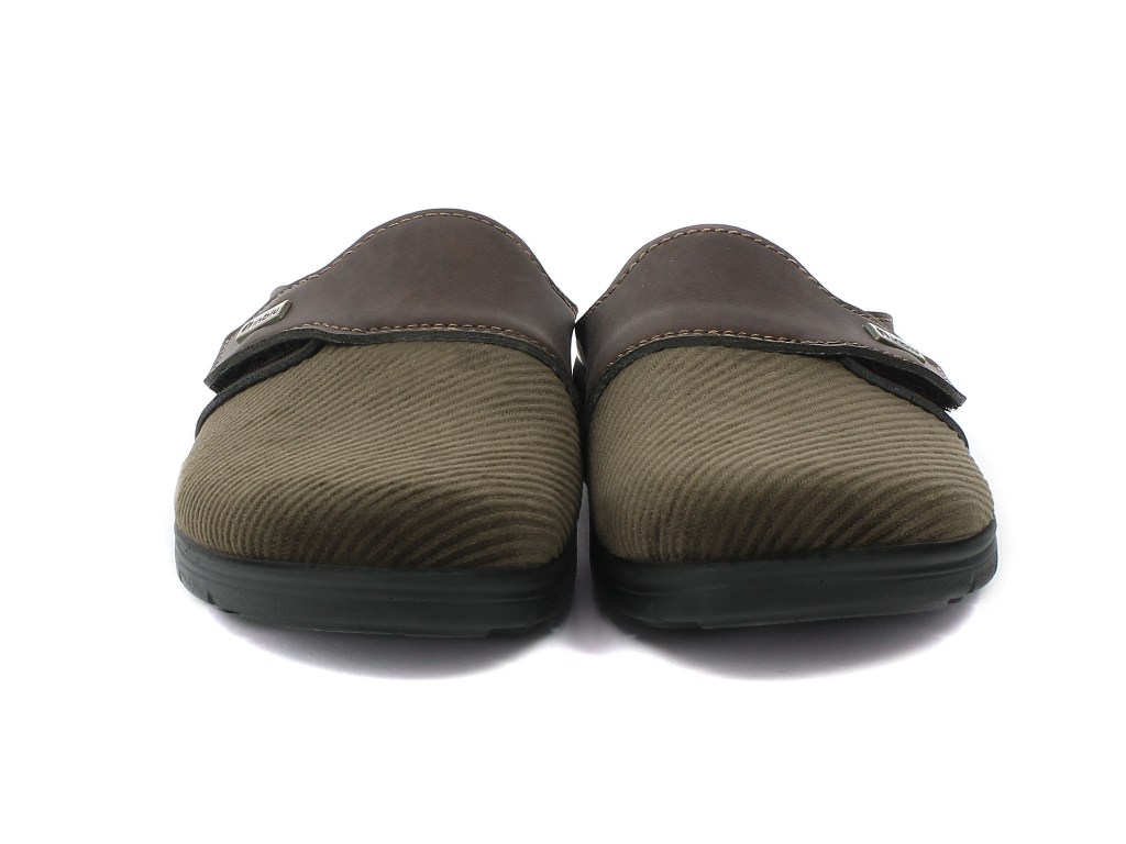 Ciabatta pantofola autunnale da uomo con tomaia in velluto, arricchita da un cinturino superiore regolabile con velcro che dona un effetto vintage. Sottopiede in vera pelle, imbottito e automodellante che dona morbidezza e comfort al piede. Suola in poliuretano per una perfetta aderenza al terreno ad effetto antiscivolo. Elevata flessibilità e leggerezza. Adatta sia ad ambienti interni, che esterni.