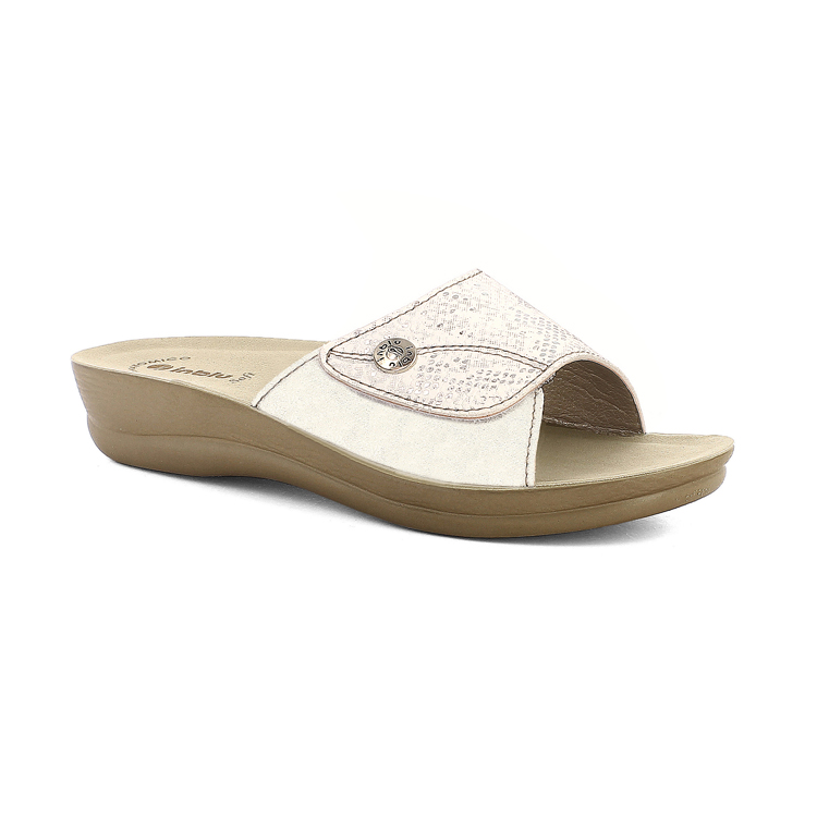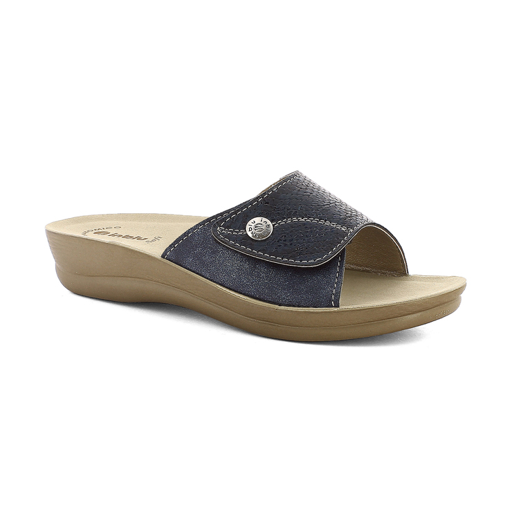 Chiamiamo queste ciabatte benessere perché hanno un tacco di quattro centimetri dall'altezza non eccessiva. Il plantare in ecopelle imbottito è comodissimo, mentre la chiusura a strappo rendere la calzata facilmente adattabile.